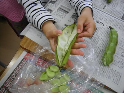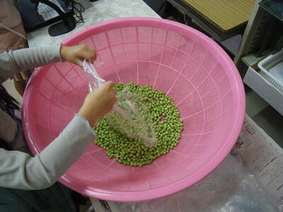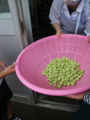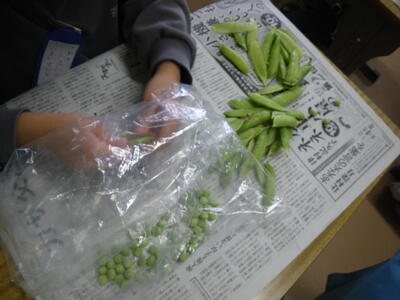 みんな楽しそうにさや取りをして、終わったあとは、枝豆のさやをみんなで給食室へ届けました。