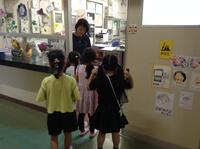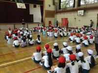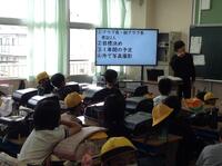 訓練の目的は、①災害発生時の避難経路を確認する。②災害発生の放送を落ち着いて聞く。③避難場所(校庭)まで「お・か・し・も」の約束を守る。の3つでした。