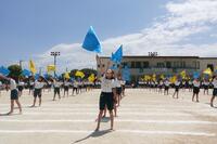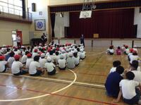 校庭や体育館に集まり、先生の話をよく聞きながら一生懸命、練習に取り組んでいます。