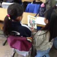 今日は図書室の本の貸し出しがまだ始まっていなかったので、学級にある本や家庭にある本などを読んでいました。1年生も一生懸命に読む姿が見られました。