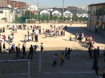 初日の業間休みにはたくさんの学級が練習を行っていました。