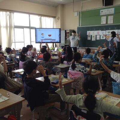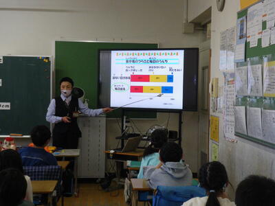 11月25日(金)3年生の各教室で、「千葉県ヤクルト販売(株)」の外部講師の方にいらしていただき、「ヤクルトおなか元気教室」を開催しました。