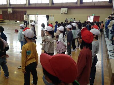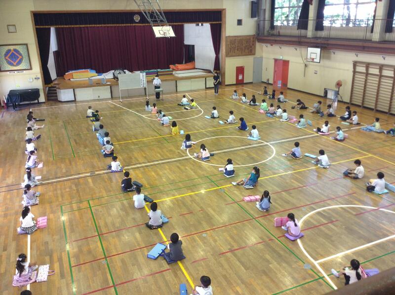 「先生たち何しているの~?」と体育館をのぞいてみる子供たちがいました。