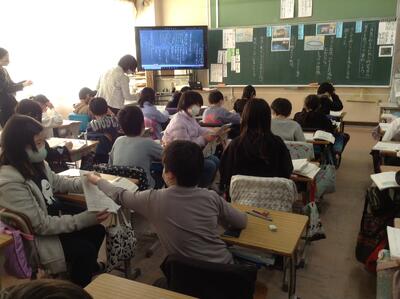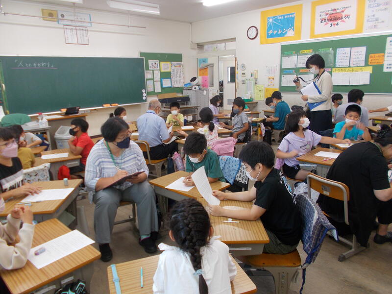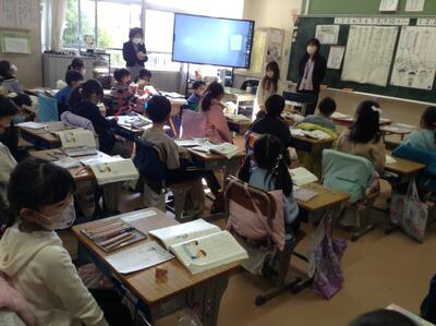 1年生と4年生の4クラスで授業が公開され、南行徳小学校の先生や退職校長会の先生方にみていただきました。