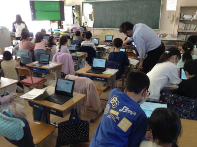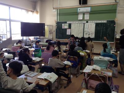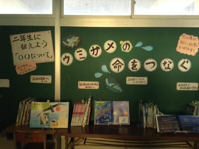 4年生の授業は【うみがめの命をつなぐ】という教材文の要旨やそこから自分が興味を持ったテーマを調べ、パワーポ