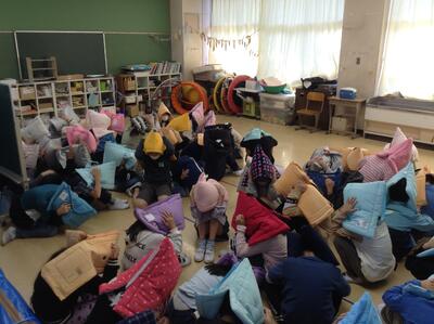 4月27日(水)避難訓練と引き渡し訓練が実施されました。実際に地震が起きたらどのように行動すればよいのか、
