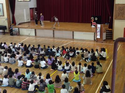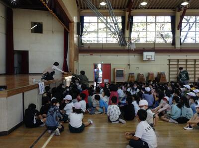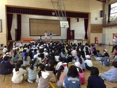 4月28日(木)ワクワクした気持ちで始まった1年生を迎える会。代表委員のお兄さん、お姉さんが考えてくれたクイズや新井オンゲームで1年生は大盛り上がりました。