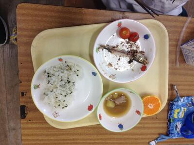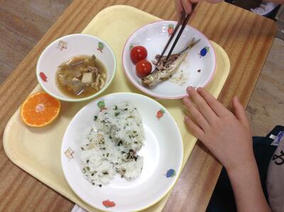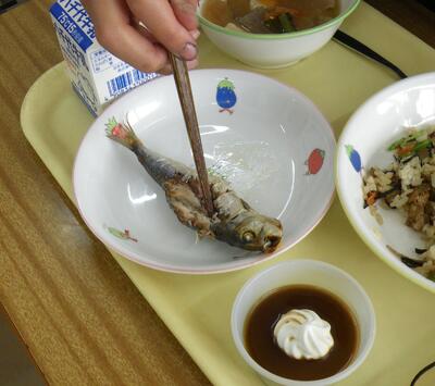 みんな真剣に取り組んでいて、普段お魚が苦手、という子もがんばって食べていました。残してしまいがちないわしの