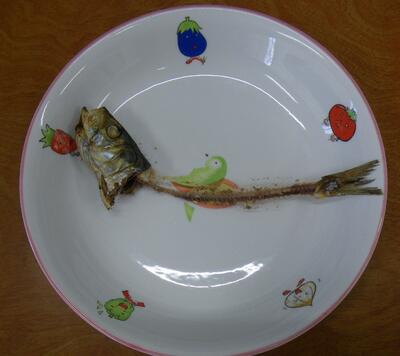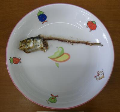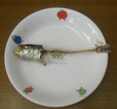 みごと優秀賞に輝いた児童が食べたいわし。すばらしい!大人でも、ここまできれいに食べるのは難しいです!!