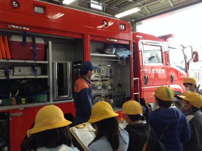今日は、市川市消防局南消防署広尾出張所にて3年生が見学を行いました。