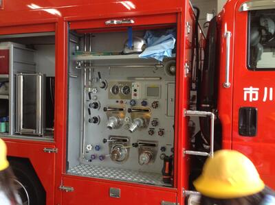 消防車には、たくさんの水をのせた水槽車や大量の水を吸い上げおくるポンプ車など、同じ赤い大きな車両でも種類と役割があることを知りました。