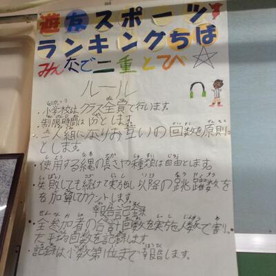 今は、短縄に挑戦中です!学校行事である短縄大会と合わせて取り組んでいますので、多くの子が参加して頑張っているところです。