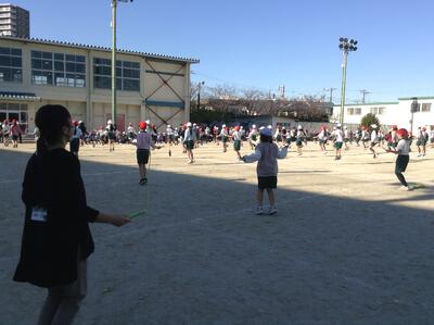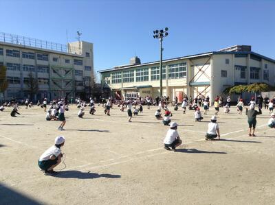 12月7日(水)に2・4年生、8日(木)に3・5年生、9日(金)に1・6年生、あゆみ学級が短縄集会を実施しました。