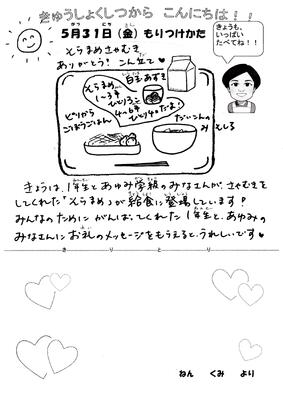 よく食べていました。初めて「大完食」を達成した1年生のクラスのみんなが、「だいかんしょくしました」のお手紙をくれました。同じ日に、ペア学年の6年生も大完食達成です!うれしい1日でした!