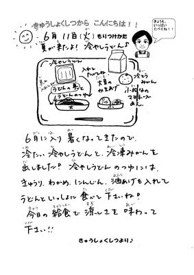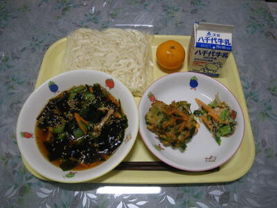 6月の給食に出した冷やしうどん、冷たくておいしいと人気でしたので、もう一度出しました。