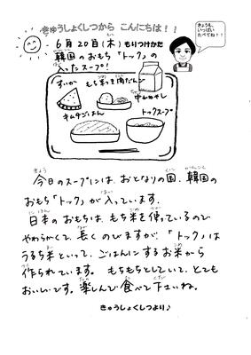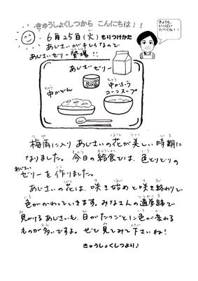 前日には、「あしたの給食は何?」と聞いてきた子が何人もいました。改めて、毎日の給食を楽しみにしている子がたくさんいるんだな、と思ってうれしくなりました。みんなよく食べていました。