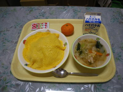 オムライス 牛乳 ABCスープ 冷凍みかん