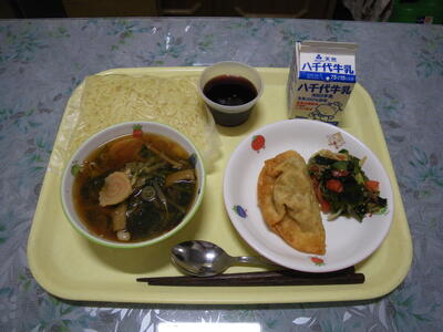 みそラーメン 牛乳 小松菜ぎょうざ トマト りんごゼリー