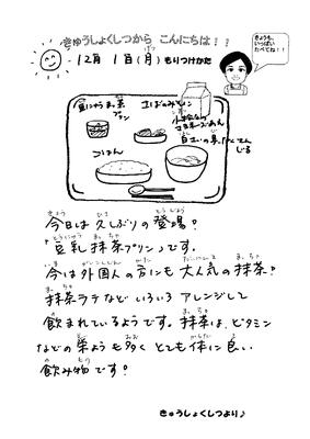 久しぶりに登場の豆乳抹茶プリンが人気でした。リクエストボックスにリクエストがあったメニューです。