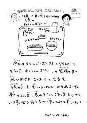 キャラメルポテトが大人気でした。今月の献立表の裏面にレシピを載せています。