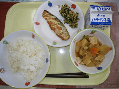 ご飯 牛乳 鮭の和風マヨネーズ焼き 納豆あえ 肉じゃが