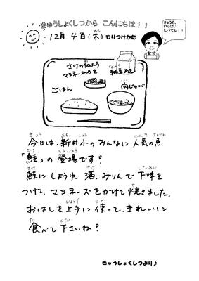 12月10日の給食(千葉県でとれるお魚メニュー)