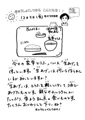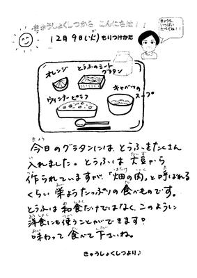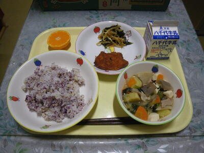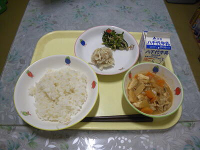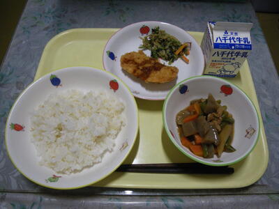 大豆と生揚げの鉄分をしっかりとれるメニューです。欠席者が多めだったので残りは多かったのですが、子どもたちはよく食べていました。