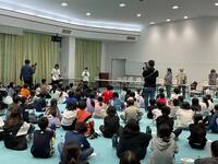 演奏曲は、「強風オールバック」と「アイドル」でした。2曲とも、人気の楽曲なので、演奏が始まると、子供たちが楽しそうに体を揺らして歌っていました。演奏では、各パートの子供たちが、ステップを踏んだり、踊ったりする場面がありました。楽しい雰囲気の中で手拍子も弾み、子供たちのたくさんの笑顔に包まれたミニコンサートになりました。