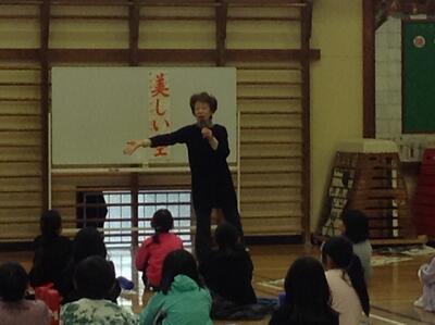 「続きは、学校図書館の本を読んでください」とどんぐりさん。本好きな子が増えそうな楽しい読み聞かせの会でした。