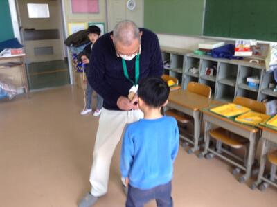 それぞれのコーナーに地域の方にいていただき、1年生の子たちが回りました。竹とんぼは地域の方が作ってくださったのをお持ちいただきました。初めて竹とんぼを飛ばした子も多くいました。また、こまのコーナーでは、ベーゴマを地域の方が回したのを見て、子どもたちからは「すごーい、かっこいい」という声もあがっていました。