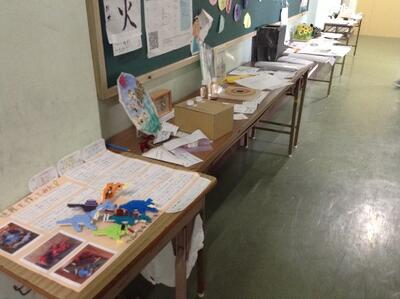 子どもたちの夏休みの作品が、廊下に飾られています。