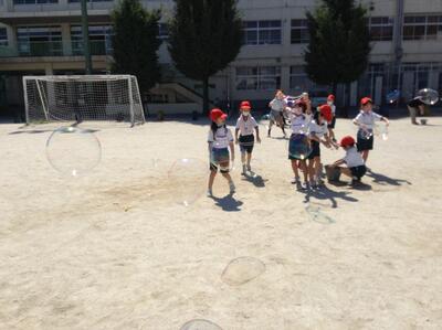 9月26日(月)に校庭でしゃぼん玉教室を行いました。