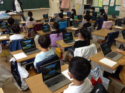 4年生の授業は【うみがめの命をつなぐ】という教材文の要旨やそこから自分が興味を持ったテーマを調べ、パワーポ