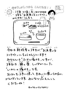 11月28日の給食(4年生と3の4 お魚食べ方コンテスト)