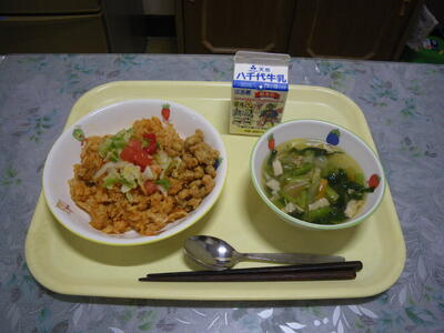 タコライス 牛乳 カレーフライビーンズ 野菜スープ