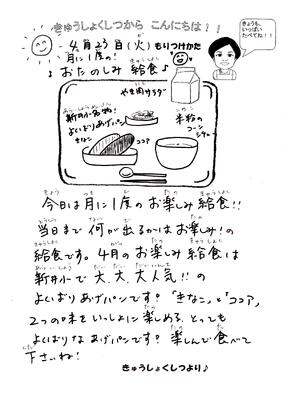 今日は月に1度の「お楽しみ給食」献立表には献立名を載せず、当日まで「なにが出るかお楽しみ!」の日です。