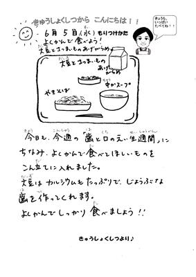 歯と口の衛生週間にちなみ、よくかんで食べてほしいものを献立に取り入れました。