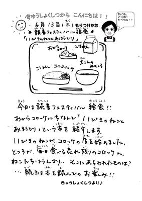 1年生が、「幼稚園でも、ぐりとぐらのカステラが出ていたよ!」と教えてくれました。給食の世界では、「ぐりぐらカステラ」はもうポピュラーな存在のようですね。