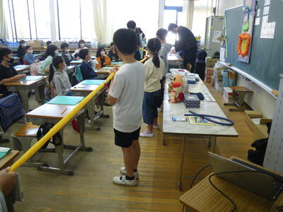 子どもたちは小腸が6メートル、大腸は1.5メートルもの長さがあると知って驚いていました。