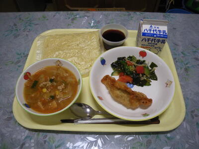 タンタン麺 牛乳 小松菜ぎょうざ わかめとトマトの中華サラダ ぶどうゼリー