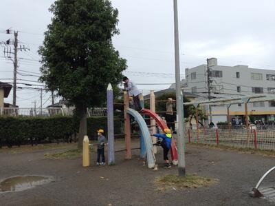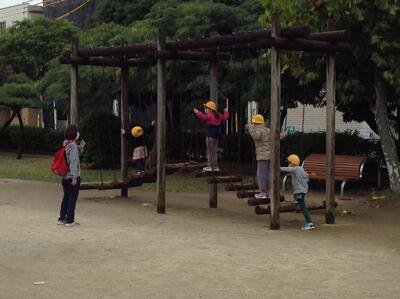 公園では、新井小にはない大きな遊具で遊んだり、「秋さがし」をしたりして楽しみました。
