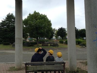 えんぴつ公園までは、何度か大きい道路を渡りましたが、左右を確かめ、手を挙げて安全に渡ることができました。