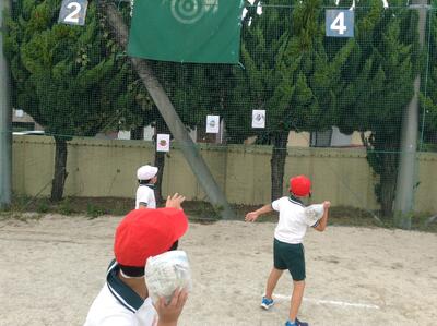 的に向かって投げて何点取れたか目標をもって頑張っています。何度も挑戦しています。