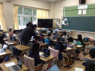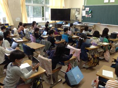 1年生、タブレット活用!