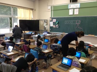 今日はICT支援員さんのお力を借りて、タブレットの立ち上げ方、ログインの仕方などを練習しました。