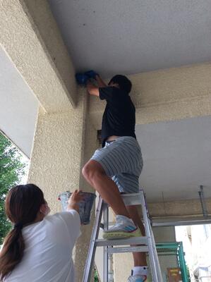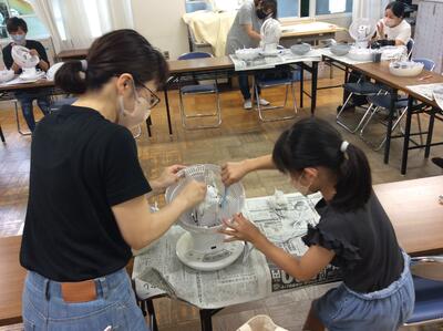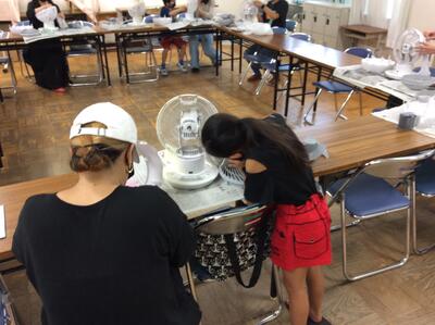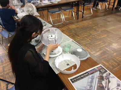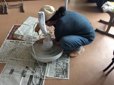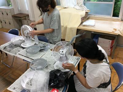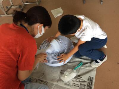 普段、全ての教室で使っているサーキュレーターを分解して隅々までていねいにほこりを拭き取ってくださいました。また、音楽室の扇風機もきれいに掃除してくださいました。
