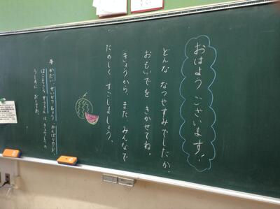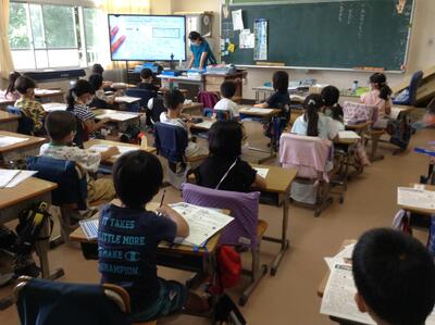 各教室の様子を見てみると、夏休みのお便りをみんなで読みながら先生の話を聞いている学級。