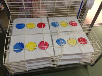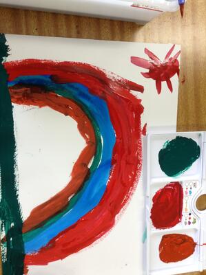 22日・23日に1年生が「はじめての絵の具」をしました。講師の方に教えてもらいながら絵の具セットの使い方、絵の具の出し方、水の混ぜ方、筆の使い方についてを学びました。とても楽しそうでした。