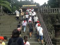 最初に日光東照宮を参観しました。各グループに分かれて、東照宮の中を見て回りました。三猿や眠り猫の彫刻を見つけたり、奥の院までの長い階段を歩いたりしていました。東照宮の荘厳な建物を見て圧倒されていました。