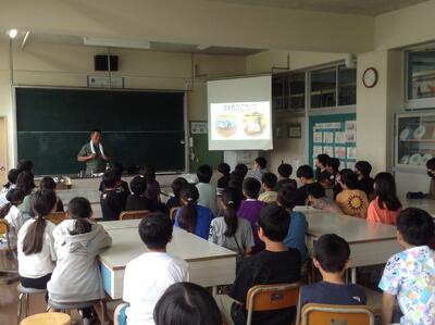7月2日(水)2,3校時に、5年生は、兼業農家としてお米を育てている市川市教育委員会学校地域連携課の中村様をお招きして、お米についての授業を受けました。